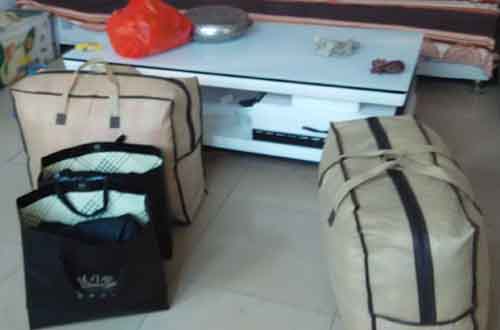 圖為公司贈送的羽絨服、羽絨被各兩件